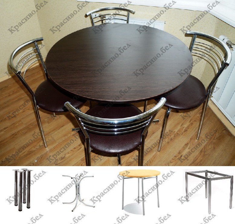 Отличным вариантом для круглого стола диаметром от 900мм. до 1100мм. является подстолье «Тирамису» . Эти опоры представляют собой сваренные буквой «П» пары ножек, соединенные перемычкой. Подстолье разборное, что позволяет легко его разбирать, перевозить или переносить из комнаты в комнату. В ножках установлены толстые пластиковые подпятники, которые сберегут Ваше половое покрытие. Единственным, на наш взгляд, минусом опор стола «Тирамису» является отсутствие регулировок по высоте.