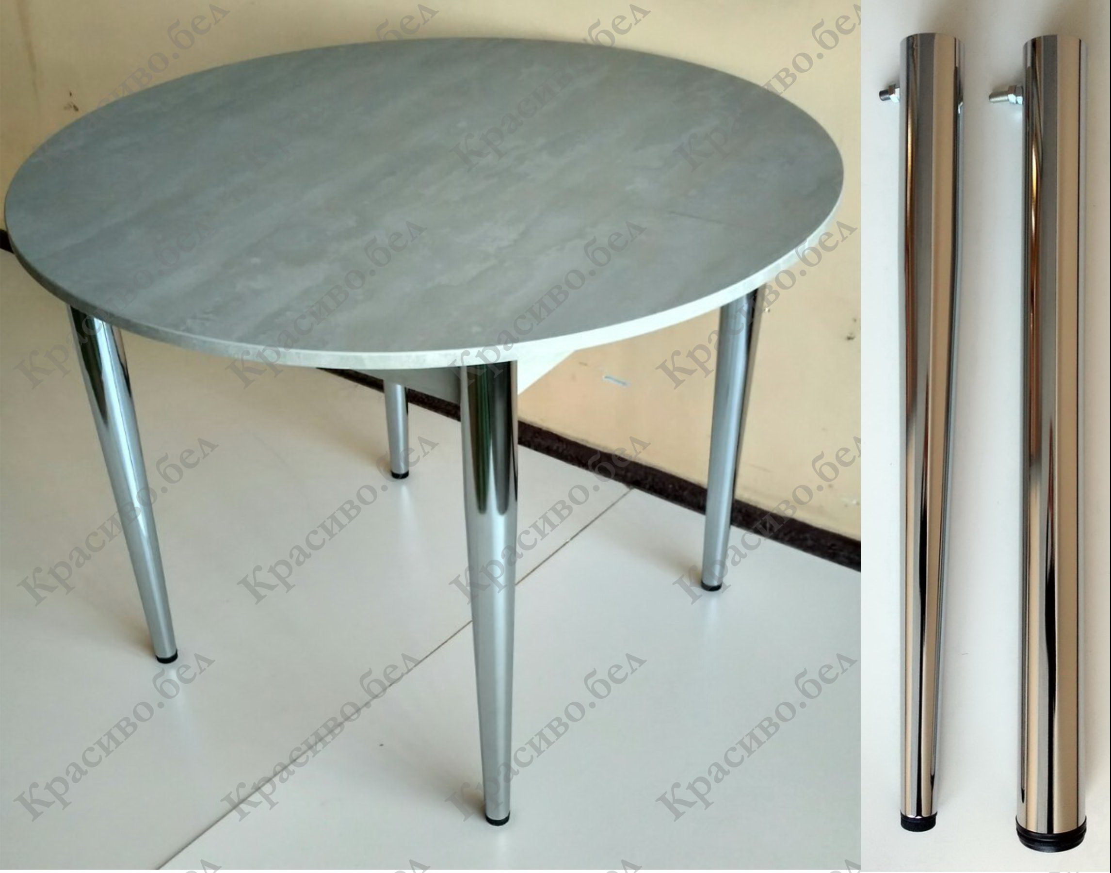 Круглый стол "Серый камень" с выбором размера и ножек