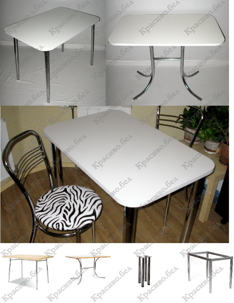 Рекомендуем выбирать кухонный стол для маленькой кухни на подстолье «Розана». Это подстолье (сваренные между собой ножки стола) создавалось именно для крохотных кухонь, когда приходится экономить каждый сантиметр пространства. Из-за отсутствия 4 ножек, Вы можете свободно задвинуть под столешницу 4 стула. С классическими ножками - это просто невозможно. За стол с таким вариантом ножек стола очень удобно подсаживаться. Ножки не мешают и (!) не выходят за пределы столешницы. Еще одним несомненным плюсом данных опор стола является наличие регулировок по высоте каждой ножки!