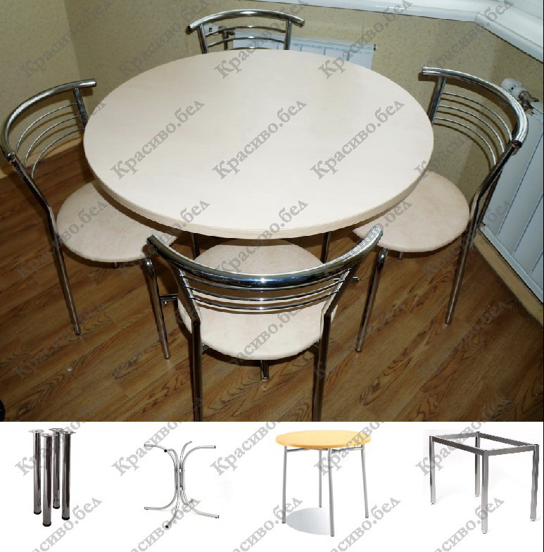 Отличным вариантом для круглого стола диаметром от 900мм. до 1100мм. является подстолье «Тирамису» . Эти опоры представляют собой сваренные буквой «П» пары ножек, соединенные перемычкой. Подстолье разборное, что позволяет легко его разбирать, перевозить или переносить из комнаты в комнату. В ножках установлены толстые пластиковые подпятники, которые сберегут Ваше половое покрытие. Единственным, на наш взгляд, минусом опор стола «Тирамису» является отсутствие регулировок по высоте.