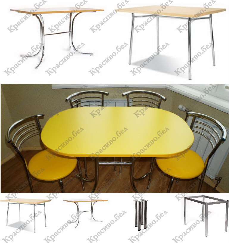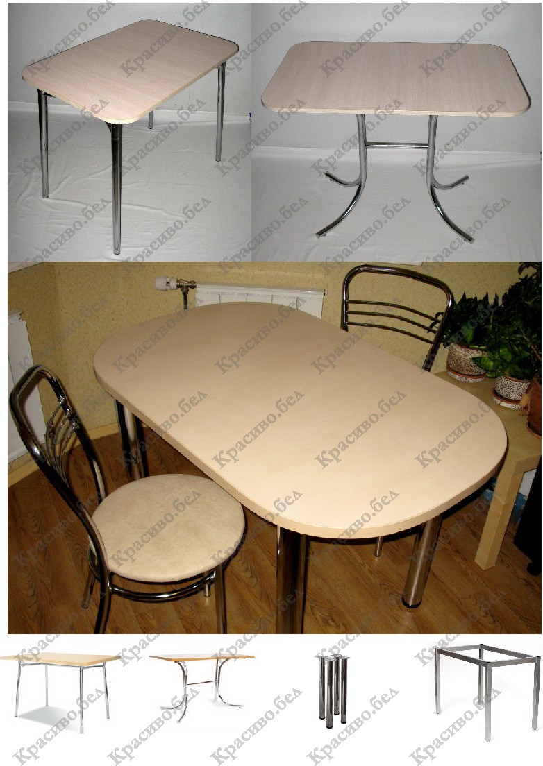 Рекомендуем выбирать кухонный стол для маленькой кухни на подстолье «Розана». Это подстолье (сваренные между собой ножки стола) создавалось именно для крохотных кухонь, когда приходится экономить каждый сантиметр пространства. Из-за отсутствия 4 ножек, Вы можете свободно задвинуть под столешницу 4 стула. С классическими ножками - это просто невозможно. За стол с таким вариантом ножек стола очень удобно подсаживаться. Ножки не мешают и (!) не выходят за пределы столешницы. Еще одним несомненным плюсом данных опор стола является наличие регулировок по высоте каждой ножки!