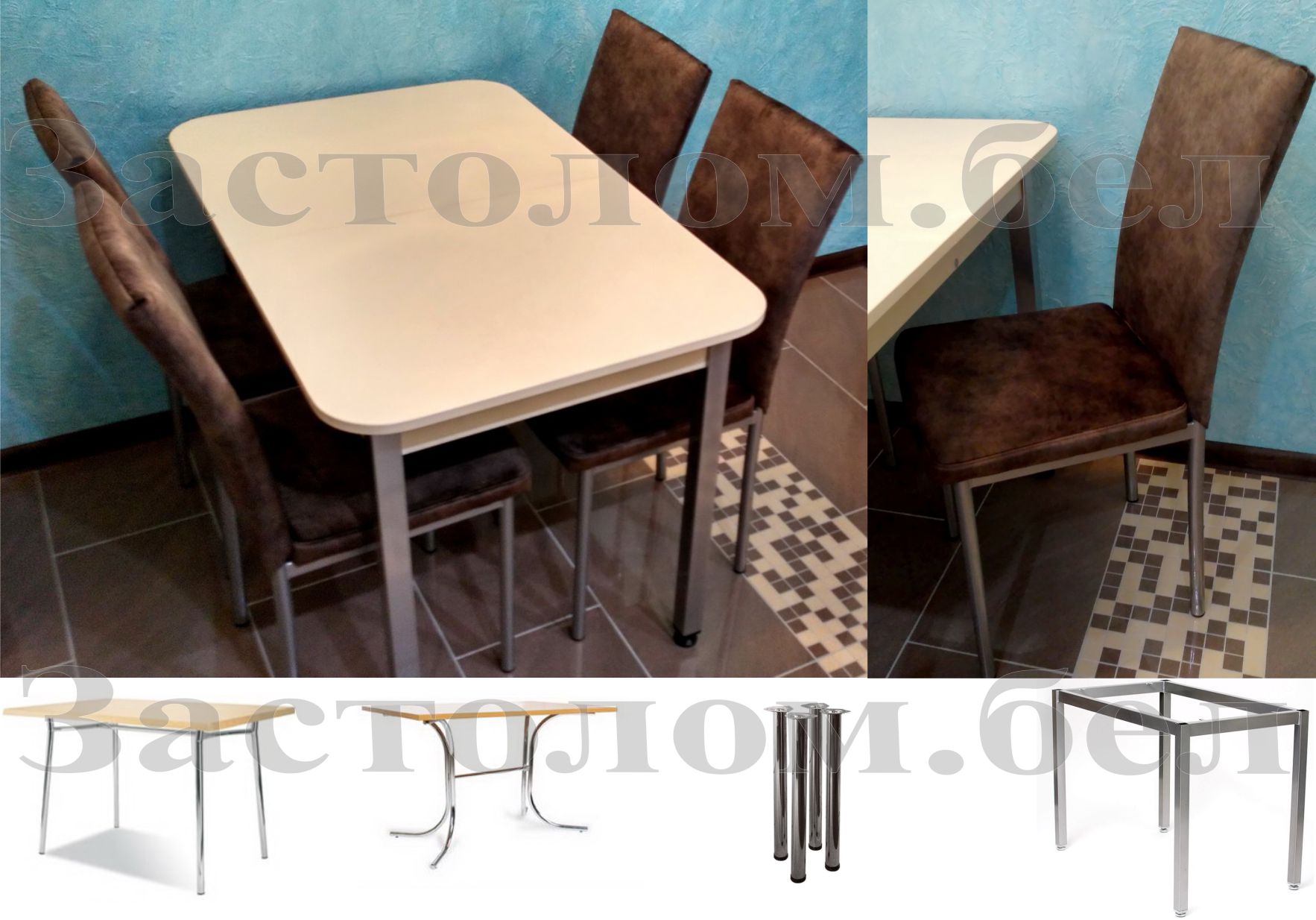Обеденная группа. Стол прямоугольный со скосом "Беж" + 4 стула "Модель 95М". Выбор размера и цвета.