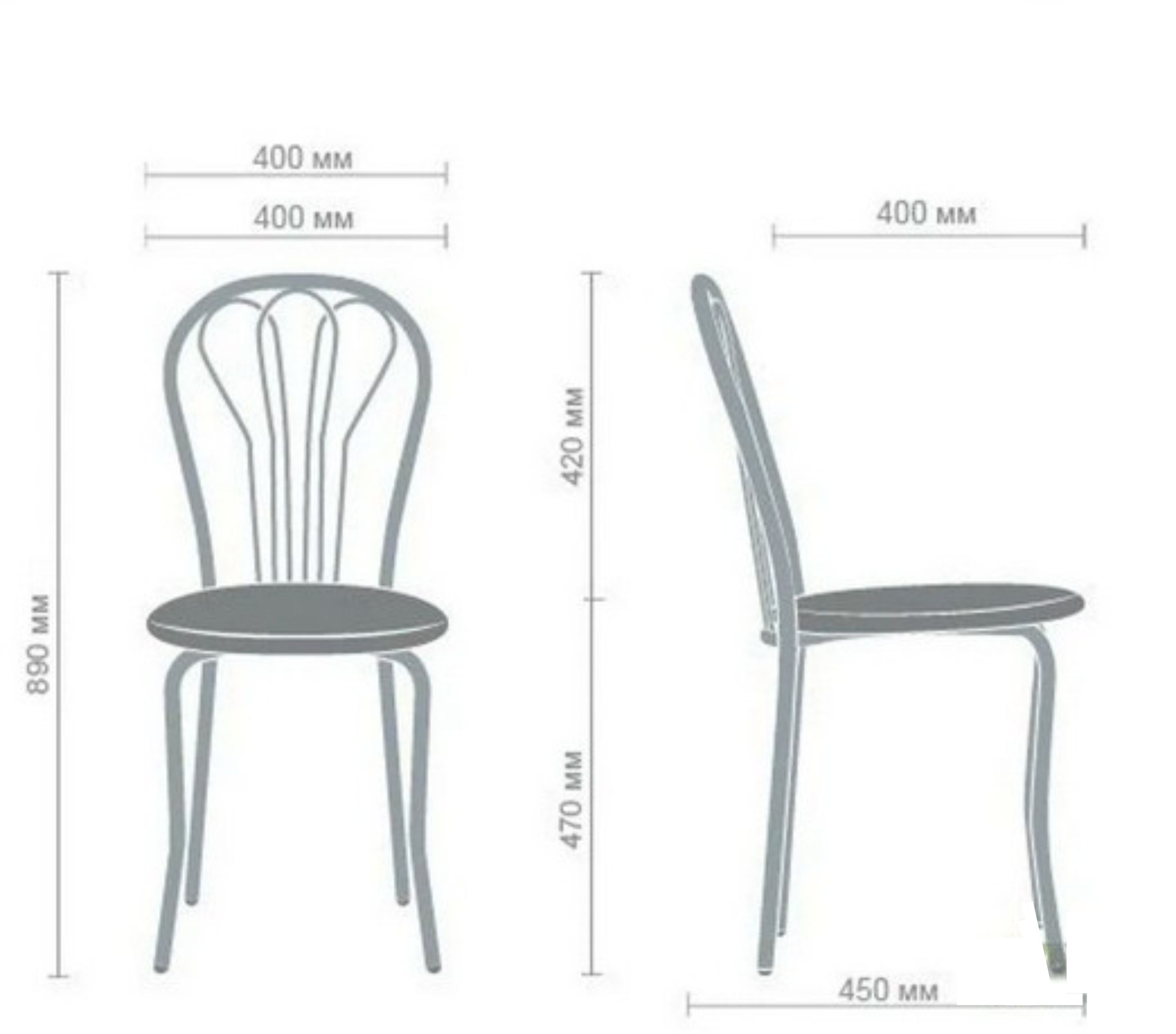 Ширина сиденья стула. Данная характеристика варьируется от 370мм в самых бюджетных моделях кухонных стульев до 600мм в более дорогих. Однако тут нужно понимать есть ли у Вас потребность ставить по 2 стула по длинной стороне стола, и поместятся ли они там! Это уже зависит и от длины стола, и от расположения ножек в этом столе и от ширины сиденья стульев. Все эти моменты мы всегда рекомендуем нашим покупателям выяснять еще до заказа стульев, чтобы потом не было проблем. Для удобства людей со средней комплекцией достаточно ширины стула в 400мм. Остальное - вопроса дизайна и личных вкусов каждого.